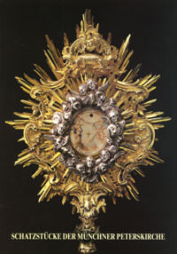 Die Münchner Peterskirche, das älteste Gotteshaus der Stadt, ist durch ihren Kirchturm, den Alten Peter, weltbe- kannt. Das Innere der Kirche bietet im gotischen, barock- überformten Bau Platz für 17 Altäre und Hunderte von Kunstwerken. Die vielen Bilder, Heiligenfiguren, Kapel- len, Gitter, Grabmaler und Säulen verbinden sich mit dem Klang der Glocken und dem Duft des Weihrauchs und des Blumenschmucks für jeden Besucher zu einem unvergeßlichen Eindruck bayerischer katholischer Sinn- lichkeit. Turm und Innenraum der Kirche sind weit berühmt und viel besucht. Kaum bekannt ist, daß zu dieser Kirche einer der größten Schätze an Goldschmiedegerät, wie Kelchen, Monstranzen, Weihrauchgefäßen, und an Paramenten aus Italien, Frankreich und Deutschland, gold- und silber- durchwirkten Stoffen, Meßkleidern, Fahnen, Baldachinen usw., gehört. Für diesen Schatz der Peterskirche haben Münchner Bür- ger, Adelige und Herzöge vom 13. bis zum 19. Jh. reich ge- stiftet, haben Münchner Künstler und Handwerker ihre schönsten Arbeiten gefertigt. Jahrhundertelang haben Pfarrer, Mesner und Kirchenverwaltungen diesen Schatz gehütet und vermehrt, der auch heute noch dem Gottes- dienst dient. Weil aber immer nur ein kleiner Teil gezeigt und verwendet werden kann, soll in Zukunft der Schatz in einem Nebenraum der Kirche öffentlich zugänglich auf- gestellt werden als Zeugnis von handwerklicher Kunst, von Frömmigkeit und Kult in München.